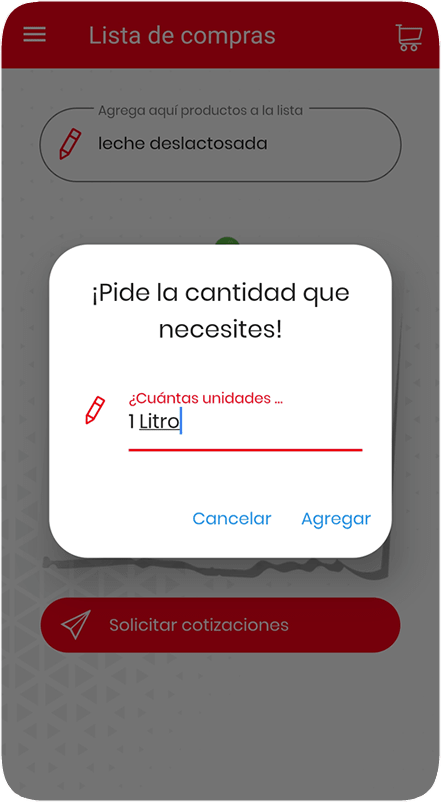 Tu lista de productos. Funciona de la misma forma en que lo dirías personalmente al tendero.